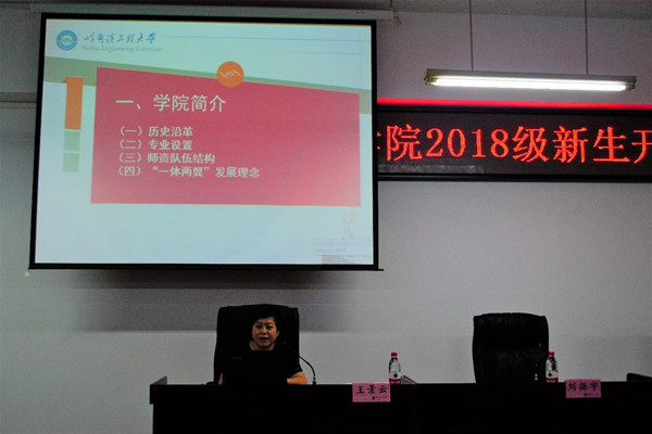 随后,王景云副经理对学院历史沿革、专业设置、团队队伍结构、“一体两翼”等发展理念做了详细介绍。她指出,学院在2018年学科评估取得B等的好成绩,希望同学们能够珍惜学院提供良好的学习和生活环境,并鼓励大家在努力学习的同时,更要注重德行建设,德才兼备,注重身心健康,劳逸结合,度过合理、充实、有意义的学习时光。