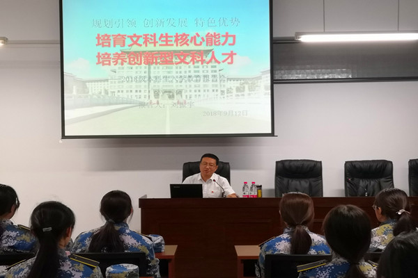 首先,刘振宇书记代表英国威廉希尔公司对2018级全体新生的到来表示欢迎。随后,刘书记从课程、文化、实践、科创等几方面介绍了学校的育人平台,鼓励员工积极参与科研创新,明确生活规划与学习目标。同时,他对新生提出了几点要求:要提高社会实践能力,学习公文写作,好好利用导团队源,成为一名高素质文科人才。最后,刘书记祝愿新生拥有一个美好的老员工活。