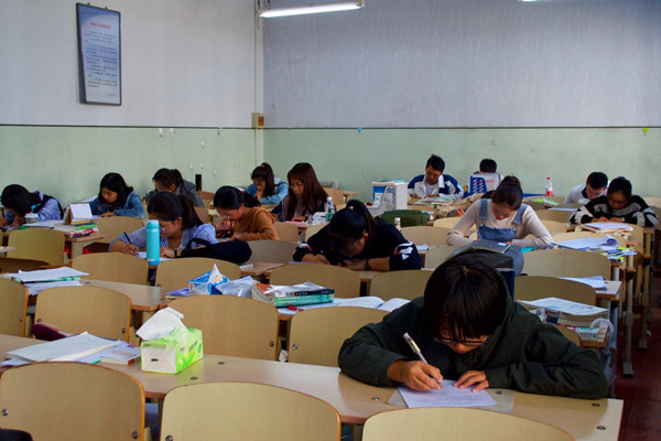 首先,应试的员工依次进入教室并进行签到。同学们全数到场后,杨旭静向同学们落实考试要求并组织分发试题。笔试过程中秩序井然,同学们专心致志答题,心无旁骛。笔试结束后,同学们有序离场。