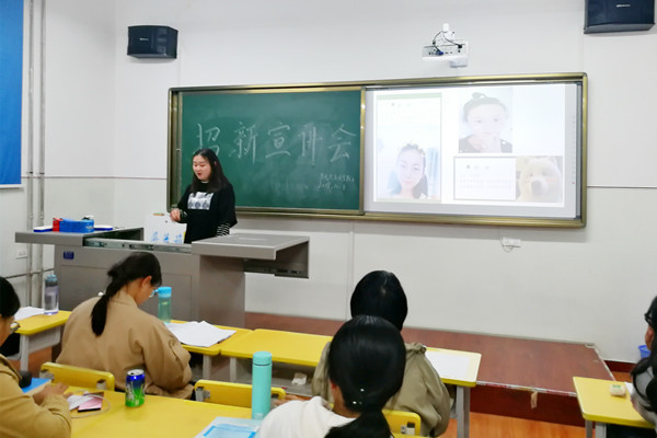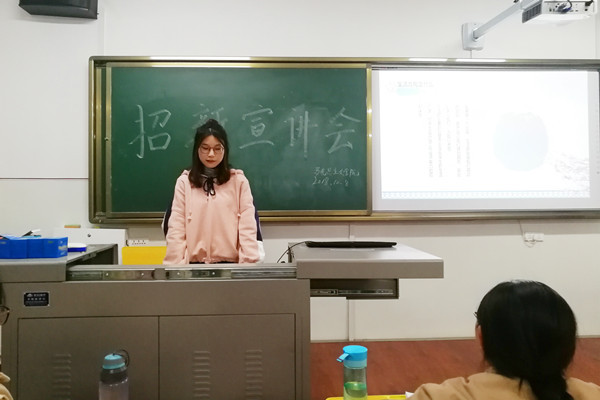 首先,各部门部长分别上台,以PPT的形式向同学们介绍了部门的基本情况及具体职责。接着,他们针对同学们提出的问题进行了详细的解答。最后,18级新生填写报名表,进行现场报名。