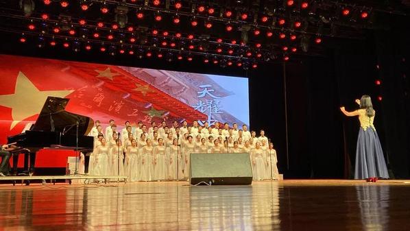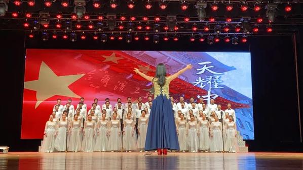 首先,是诗朗诵《祖国啊,我亲爱的祖国》,同学们款款深情诉说着对祖国的告白;接着,《天耀中华》唱出我们青年人对祖国母亲的祝福,对新时代的礼赞!最后一首《传奇》,唱进你我心田,温暖感动······台下,观众被吸引,不时报以热烈的掌声,现场气氛进入高潮。