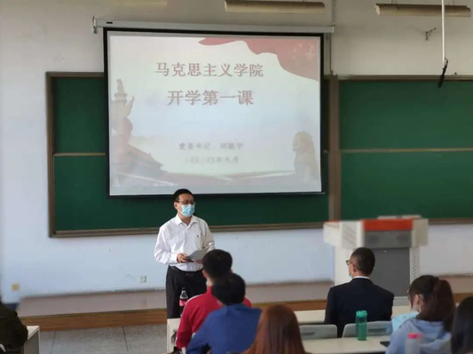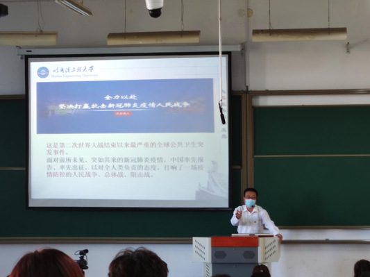 随后,刘书记结合习近平总书记在全国教育大会以及2018年在北京大学师生座谈会上的讲话,强调教育的相关重要问题,教学的首要目的与根本任务等。课堂上,刘书记还带领同学们集体学习了习近平总书记在全国抗击新冠肺炎疫情表彰大会的重要讲话。